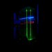 Based on preliminary tests with newly hatched A. salina, a laboratory apparatus was designed to induce controllable collective vertical motion of A. salina. Here, the multi-laser guidance system is shown in operation during a vertical migration experiment. Individual organisms are visible as motile particles in the region illuminated by the green laser, as they swim vertically following the blue laser beam.