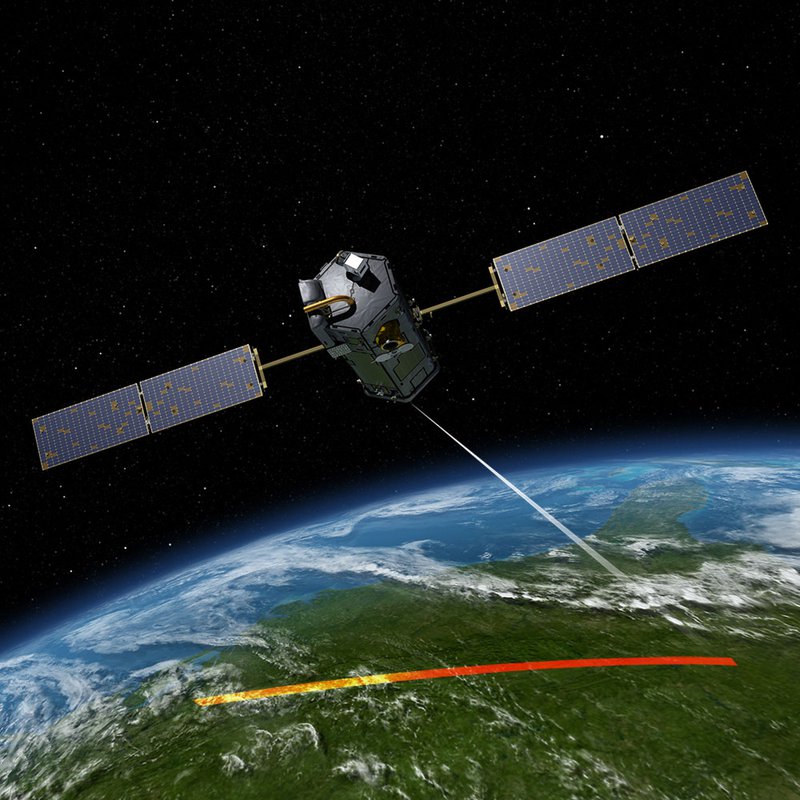 Artistic representation of an OCO-2 orbit track, covering vegetated areas and measuring Solar Induced Fluorescence (SIF). OCO-2 will enable measurements within a narrow swath with sufficient accuracy for 5km x 5km spatial scales—an unprecedented resolution for SIF measurements from space. The measurement technique itself is also robust against occurrences of atmospheric aerosols and thin clouds, which typically affect purely optical-based remote sensing techniques.